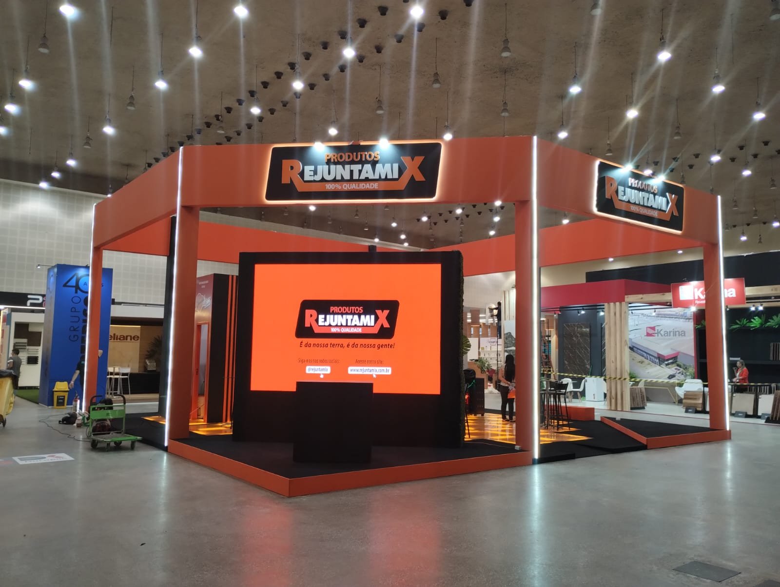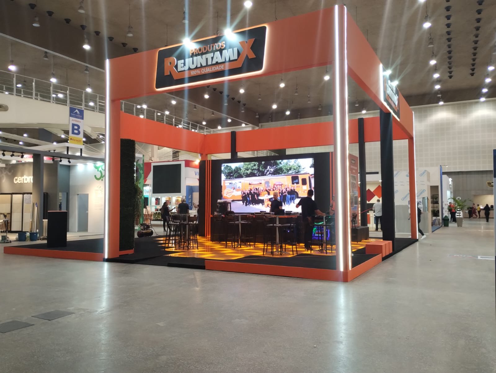 Construção de stands exclusivos e cenografias impactantes! Design, inovação e acabamento impecável é aqui!